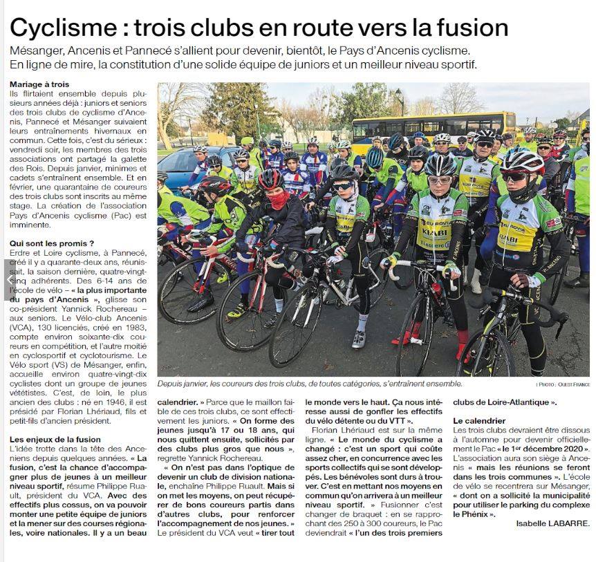 Mésanger ayant une section VTT alors qu’Ancenis et Pannecé possèdent une école de vélo, « avec une seule licence, nos jeunes pourront diversifier leurs activités. » Au niveau du fonctionnement, fusionner représente enfin un apport supplémentaire.