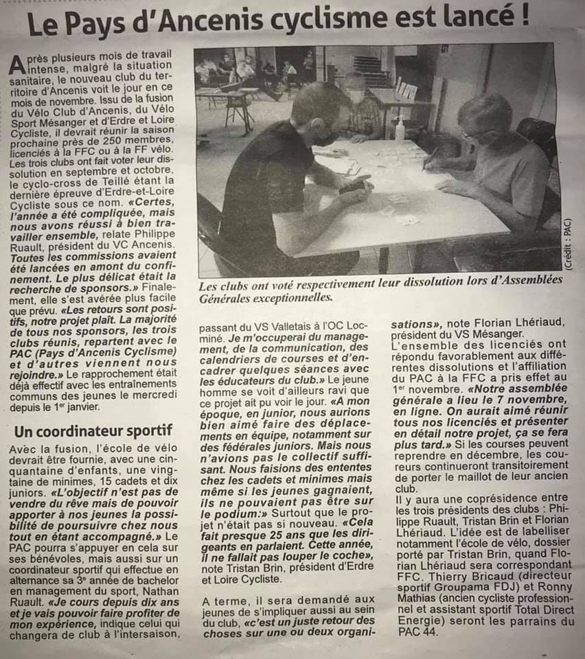 Le pays d’ Ancenis cyclisme est lancé Publié parPays d'Ancenis Cyclisme 4414 novembre 2020Publié dansNon classé Encore un bel article au sujet du club, cette fois ci c’est dans le Pays de Loire Cyclisme que l’on parle de notre projet. Partager : Partager sur X(ouvre dans une nouvelle fenêtre) X Partager sur Facebook(ouvre dans une nouvelle fenêtre) Facebook J’aime chargement… Similaire Publié par Pays d'Ancenis Cyclisme 44 Club cycliste amateur du pays d'Ancenis 44. section compétition (route, VTT, cyclo cross), section Cyclo tourisme et section Ecole de Cyclisme. Voir plus d’articles